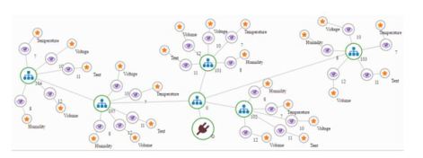 Figure 1. Multi-hop topological view captured during experimentation using sensor cloud solution to analyze the node and their sensor connectivity