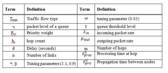 The real values of hop count and delay bring the dynamism into the selection of each packet from the priority queue. Equation 1 computes the new priority weight value to each outgoing packet at router node. The purpose is to serve the long distance with sensitive data packet first over the regular traffic. The packet processing rate of queue is defined as expressed in Equation (2). It indicates the saturation state or unsaturated state of the network. It helps to find the systemperformance concerning root causes of lost packets and successfully delivered packets.