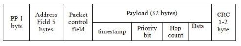 A RTPS uses FCFS mechanism and EDF approach [24]. It is modified according to the proposed priority approach. To authenticate results both scheduling approaches are put into service and compared with each other for delivering the real-time data packets. The packet structure is defined in figure 1. Due to variable payload feature, we have utilized 4 bytes payload for storing the temperature, humidity, accelerator, and heart beat counting. The packet size is 32 bytes in total. The network is setup with 8 RF battery powered source nodes with one RF controller equipped with main supply. Each source node except leaf source node(s) senses its data and transmits the same if it is received from its downstream source node called as a repeater node. The real experimental view is depicted in figure 4.
