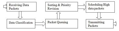 Figure 3. Block diagram of Operational flow Routing Node for scheduling high priority data packets