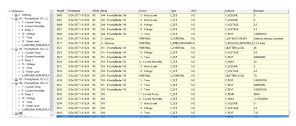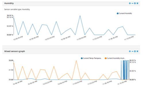 It is designed to monitor the status of each sensor device through this cloud solution in real time. Each active device could be controlled using various analytical tools which show the current reading through graphical representation, history of each sensor, battery level, the number of packets received, the path used, packet indication using beep, and also various filtering equation would be used to get the desired outcome. This solution saves the time of analysis and also gets to know the status of each device. It is easy to address the failure in time by monitoring the sensor activities. The end device could be equipped with many sensors because it assigns the unique identity to each sensor attached to a particular node. Therefore, we have generated multiple event data at each sensor node and which help us to create significant traffic to test priority queue efficiently. It is observed that queuing operations work efficiently for handling the different flows simultaneously. The data packets are monitored using the cloud solution, as shown in figure 5. The battery levels of an active node are monitored using group sensors as depicted in figure 6.