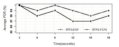 Thus it proves that the dynamism in priority weight metric helps to process the short deadline packets faster over newly sensed little weight packets. According to scenario-2, the average PDR ratio is noted approximately 99% over whereas the throughput is observed around 7% higher than FCFC method, shown in figure 11 and 12.