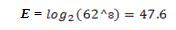 For example a password that consists of 8 characters with upper and lowercase characters and numbers are given in the following equation: