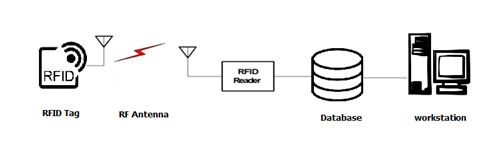 RFID tag store a unique identity code in its read-only or rewrites internal memory depending on type and application. The reader identifies the tag through the magnetic field frequencies. After authentication is done, the tag sends its unique serial and all information to the reader who, in turn, sends these data to the application side through middleware. The middleware is an interface between readers, tags, application and database. When tags send their identification to the reader and the system will match tags’ code with the corresponding data existing in the database. The result determines if the next processing will be accepted or rejected as shown in Figure 3. [1]