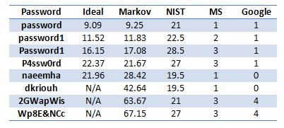 Table 6. A Short List of Passwords as Scored by our Markov-Model [18]