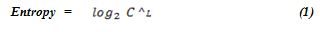 Entropy will show the passwords variation expressed as bits. It’s calculated by a formula provided by Shannon (1948). Where C stands for the password cardinality which is the amount of different elements in a set by using the values in Table 5 for the cardinality and L stand for the length of the password and the formula is: [19]