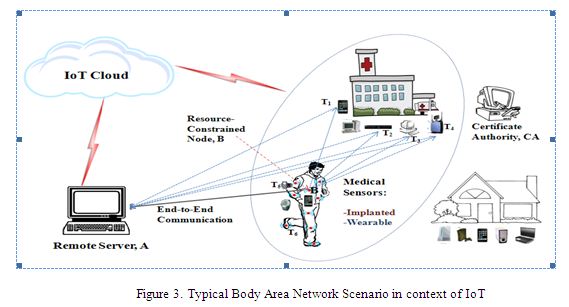 With IPv6 there are enough IP addresses to connect billions of ‘things’ to form our new IoT world but whether these things would be secured enough to ensure individual privacy rights and secure the systems from malicious attacks? The cryptographic algorithms are required to be highly efficient, low power, low energy realizations especially for battery operated or passively powered devices. In many practical applications, the gateway needs to send periodic control messages, notifications, and sensitive confidential data to all the wearable devices where a common secret key is required to encrypt the broadcast messages. Symmetric key cryptography such as AES provides fast and lightweight encryption/decryption on such smart devices and their integrated hardware supports it as well. However, when this number of connected devices becomes high, exchanging symmetric keys becomes infeasible and the need to have an efficient scalable key establishment protocol becomes critical. Another approach is to distribute keys by asymmetric key cryptography but it requires high computational costs; the main concern for resource-constrained devices [16]. Therefore, conventional security primitives cannot be applied due to the heterogeneous nature of sensors (either implanted, on-body or wearable), low resources and the system architecture of IoT based healthcare systems [3].