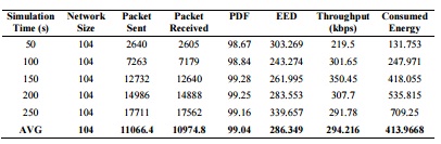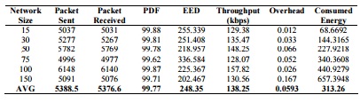 Table 4. Results of AODV routing algorithm