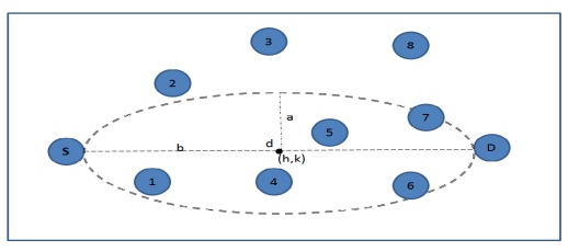 Step 1: obtain nodes location dynamically and compute the distance (d) from S and D using (1)