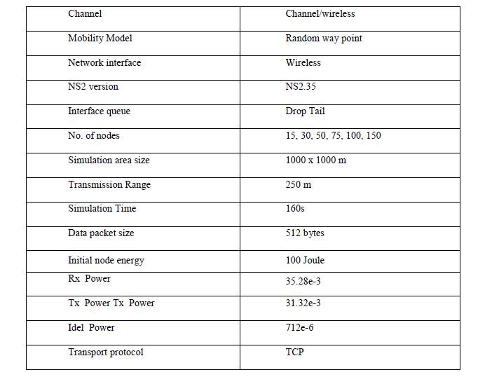 In the first environment experiment setup, a network is loaded with moving nodes and configured with same speed. In each simulation test, nodes are generated randomly, contains only one source and the destination, move according to random way point mobility model. The simulation is carried for 160 sec and node move with a speed of 0 m/s to a maximum speed of 10 m/s. The exact valuesused for the number of nodes and important parameter are described at Table 1