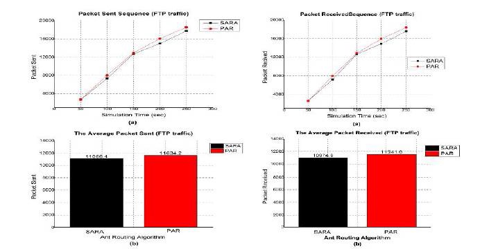The graph in Figure 12(a), (b) shows the performance of two routing algorithms in terms of packets generated by sources with simulation time. The proposed PAR generates more number of packets than SARA. From the graph of Figure 12(b), the PAR generates 5.13 % more number of packets than SARA.