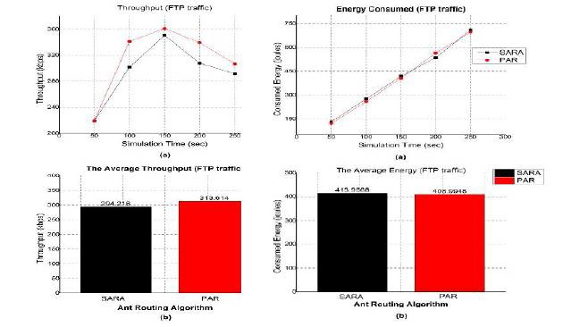 The graph in Figure 17(a), (b) shows the performance of two routing algorithms in terms of energy consumption with respect to number of nodes and simulation time. The energy consumption of SARA is high when compared to PAR. From the graph of Figure 17(b) the PAR consumes 1.2010 % less amount of energy than SARA.