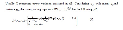 Given X, a Gaussian RV with mean σ ×and variance a2x then L= ek is a lognormal RV with aProbability Density Function