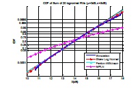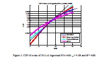 In this section, we propose to validate our approximation method and compare it with otherwidely used approximation methods. Fig. 1 and Fig. 2 show the results for the cases of the sum of20 independent lognormal RVs (p-0 ) with mean 0dB and standard deviation 3dB and 6dB. TheCDFs are plotted in lognormal probability scale [13]. Simulation results show that the accuracy ofour approximation get better as the number of lognormal distributions increase