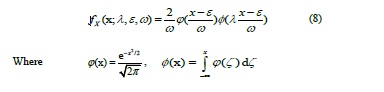 Withλ is the shape parameter which determines the skewness, éand ðrepresent the usuallocation and scale parameters andØΦ denote, respectively, the pdf and the cdf of a standardGaussian RV.