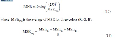 The quality of stego image stg has been studded using peak signals to noise ratio (PSNR), see Eq.(15).