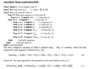 The proposed segmentation algorithm (DSIS) is constructed to calculate the size of each segment conformity according to the following steps: