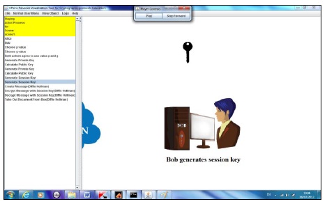 Cryptographic protocols mostly combine both theory and practice[14,15] and as such, interactive visualization tools are essential [7,8] to support a student’s understanding of the subject matter. In fact, Adding reality, with the help of realistic images and colors, offers a better chance of enhancing student understanding of protocol behavior. If objects in the animation can be moved and transferred around, this would ensure better understanding and knowledge retention [16,17]. This feature is missing in most current interactive visualization tools and the quest for the appropriate tool is still open to research.