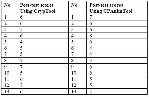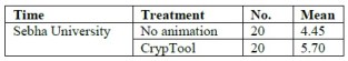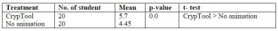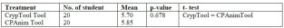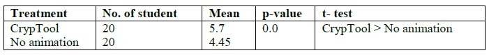 In this experiment, the tool SPSS [29] is used to statistically evaluate the effectiveness of CrypTool using t-test and p-value.