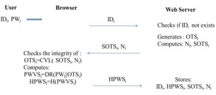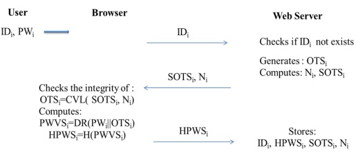 The server saves the parameters of authentication associated to the user Ui : IDi , HPWSi , SOTSi , Ni .