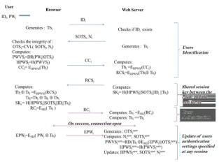 At the time, to deal with vulnerabilities in the HTTP protocol, integrity and confidentiality of data exchanged between the client and the Web server have been assured by the HTTPS protocol, in occurrence, the authentication settings and tracking of states. This protocol uses symmetric and asymmetric cryptographic methods supplied by the SSL / TLS protocol in order to insure the users’ privacy on the network. But, with the diversity of types of attacks that adapt with every situation, this system remains unable to protect the users’ privacy. In particular, if we note that the passwords generated static to weak entropy are totally breakables. So, according to an analytical study on this protocol by American researchers, monitoring of web traffics leaves sufficient information even if the data which transit are encrypted [26]. For ensuring the correlation between the clients and the web server, this protocol requires the use of cookies. Thus, to keep the state of clients connected, the given Web server creates a cookie file containing specific information to each client. It can also be used to ensure users identification by password. Several studies have been conducted in the discipline to suggest secure cookies. But, in general, almost all proposals are based on the SSL protocol, hash functions, fixed IP addresses and encryption / decryption of sensitive data to create secure cookies able to withstand at the different types of attacks [1], [17], [20], [32], [45], [48]. Of course, at the time, these protocols have presented the real solutions of security able to resist against various attacks. But, with the vulnerabilities discovered notably in the protocol SSL, and hash functions, and as, if we note that the generated passwords are static, these protocols are unable to struggle against different attacks. In order to solve these problems, other improvements have been proposed to fight against the dictionary, man-in-the-middle, phishing, and replay attacks [3], [5], [30], [31], [39], [40]. These protocols regenerate the different virtual passwords for each open session. But they do not arrive to push aside the vulnerabilities of the protocol SSL, and of the hash functions. And, they do not insure the cryptographic quality of the regenerated passwords, also the integrity of authentication settings.