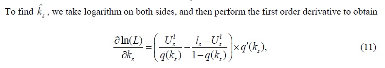 Substituting above equation to (8) and solving for ks , we get the MLE estimator of ks :