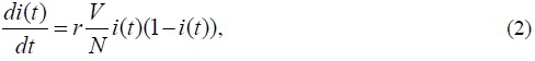 where r is the rate at which an infected host scans the address space, N is the size of the address space, and V is the total number of vulnerable hosts.