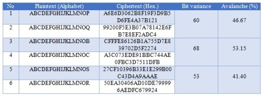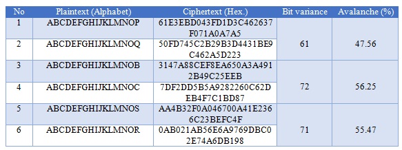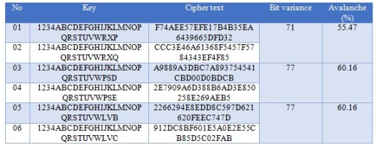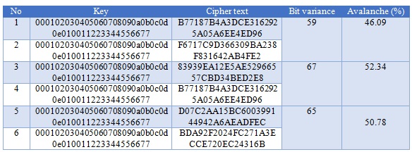 Table 4. Avalanche Effect for Fixed Plaintext but Variable Key