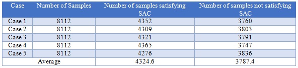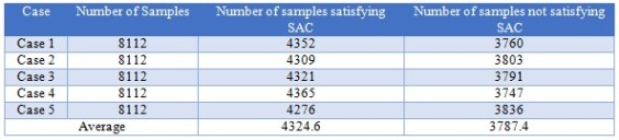 Table 20 shows that, in five experiments for 8112 sample encryption, average 4385.8 times the proposed AES-256 maintains the SAC condition. That means for single bit variance in input plaintext, bit variance in chipper text is more than 50% for average 4385.8 times.