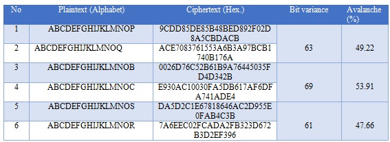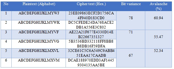 Table 6. Avalanche Effect for Fixed Key 192 Bit