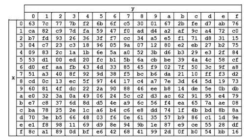 Each byte of the state array is the input of this SubBytes step and the input byte is alternated by a corresponding value. Figure 4 shows S-box. Each byte is mapped into a new byte in the following way: the left most 4 bits denotes the row and right most 4 bits denotes the column of s-box. Suppose the input byte in s-box is b7 (in binary 10110111). The left most 4 bits means 1011 (b) denotes the row number and 0111 (7) denotes the column number of S-box. So the output value for input b7 is a9 (in binary 10101001)[5].