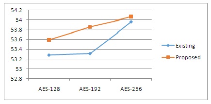 In existing system, if the key (128, 192 or 256) and input block are fixed then the avalanche effect is constant. But in proposed plan, although the key (128, 192 or 256) and input block are fixed, the 8 bit key is random with each execution. So the avalanche effect always varies with every execution.