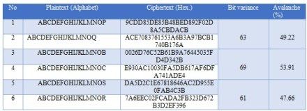 Table 9. Avalanche Effect for Fixed Key 256 Bit