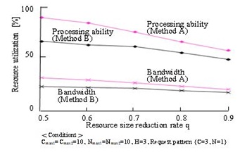 Extending the duration of resource allocation and thus providing the required amount of resource is suitable for a file transfer service. However, for a streaming delivery service, it may not necessary to extend the duration of resource allocation. In such a service, the reduction of resource size results in the degradation of QoS. To evaluate the effect of extending the duration of resource allocation, an allocation duration rate, M, defined in the following expression, is proposed: