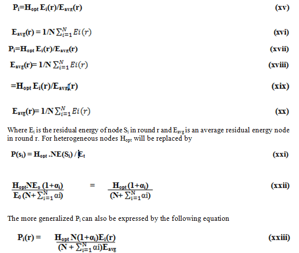 Where m is the fraction of advanced nodes, Hopt is the optimal clustering probability for corresponding homogeneous wsns. By comparing equations (11) and (12) we can confirm that normal nodes are assigned smaller probability while advanced nodes are accorded higher probability. In DEEC algorithm, cluster head selection is based on residual energy rather than an initial energy of DCQMS-Leach. When the probability is dynamically changing, the residual energy of every node rapidly decreases as the time passes. The probability Pi for node Si is given as