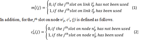 On the other hand, W wavelengths are multiplexed in the ith fiber link lip ∈ Lp, and a wavelength is divided into M frequency slots (FS). Therefore, the total number of FSs for lip is equal to MW. Here, we define mil (j) as follows.