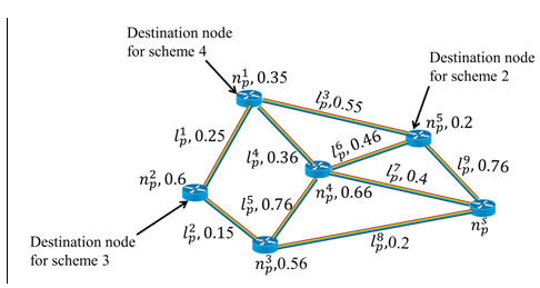 First, we consider the shortest path between each node and the source node nps. Then, for these shortest paths, the average utilization rate is calculated. When the average utilization rate of the shortest path is the smallest for a node, the node is selected as the destination node. In Fig. 4, np2 is selected as the destination node.