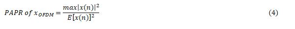 Where E[.] represents expectation operation. The parameter complementary cumulative distribution function (CCDF) is used to measure the PAPR of OFDM signal and it represents probability of PAPR exceeds the threshold value which is given by