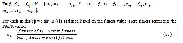 The PAPR of new spider is calculated and it is compared with worst PAPR of the spider colony members .If the new spider PAPR is less than the worst then it is replaced otherwise it is discarded. This process is repeated for specified number of iterations or until target lowest PAPR is reached.