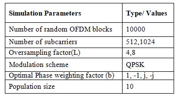 The analysis of the Proposed SLM with SSO and adaptive ABC methods have been carried out using MATLAB 8.6.0.267246 (R2015b).The simulation parameters considered for this analysis are summarized in Table 1.
