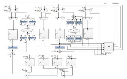 A block diagram of the DROM-CSLA-QTL-64 bit data path is shown in the fig.2. Every round of architecture includes key addition, Add Constant, Round Constants, DROM, CSLA, permutation layer (P), right data addition and Round Transposing (RT). In this paper, the architecture basically needs eight 16-bits or 128 bits wide registers, each bit composed of D flip-flops and requires ten 2-to-1 MUX. The 64-bits plaintext is separated into four 16-bits inputs and then 4-plaintext inputs are stored in the four 16-bits large register. The 64- bits key is separated into four 16 bits inputs in the same way. The 4- key inputs are stored in the four 16 bits registers. The RCA is implemented as bit-wired XOR operations. The two key additions and the two right data additions are implemented as bit-wired XORs.