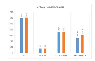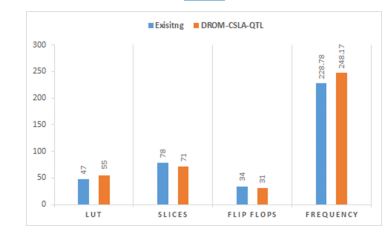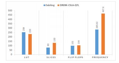 All these related works contain several problems like more area, power, and high critical path utilization. Hardware and FPGA utilization is also more. The DROM-CSLA-QTL method overcomes these problems and improves the FPGA implementation results like LUTs, slices, and flip-flops.