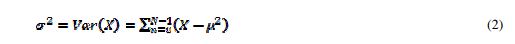 Variance is a measurement of the distance between the numbers in a data group from the mean. The variance is computed by taking the difference between each number in the data group, and squaring the differences and dividing the total number of squares by the number of values in the group. The variance is calculated by using equation (2):