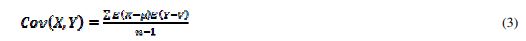 Covariance is a measure of how two variables are related. A positive covariance means the variables are positively related, while a negative covariance means the variables are reciprocally related. Equation (3) is used for computing the covariance of sample data.