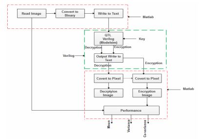 In the proposed algorithm, both encryption and decryption are performed in Modelsim by using the Verilog code. In Modelsim, the text format of input image is encrypted and decrypted using same key. The Verilog output is in text format for both the encryption and decryption process. FPGA performance was analysed for different devices of Virtex- 4, Virtex-5 and Virtex-6 by using Xilinx 14.4 ISE tool. The RTL schematic was taken from synplify pro tool.