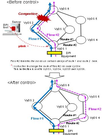 Since the main aim of References [4] and [5] was to confirm the effectiveness of using DPI technology, it assumed restrictive control conditions. For example, the server to which virtual machines are moved was fixed and it was assumed that computing power congestion and bandwidth congestion do not occur simultaneously in a server. This paper generalizes the evaluation conditions and proposes to enhance the existing DPI-based congestion control proposed in References [4] and [5], in order to dynamically select an optimal solution for cases where there are multiple candidates available for virtual machines, physical servers, communication flows and alternate routes. The paper also considers server congestion for cases where computing power congestion and bandwidth congestion occur simultaneously in a server, and line congestion for cases where the maximum allowable network delay is defined for each communication flow. In other words, a communication flow is not diverted to any route that cannot satisfy the allowable network delay.