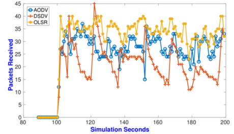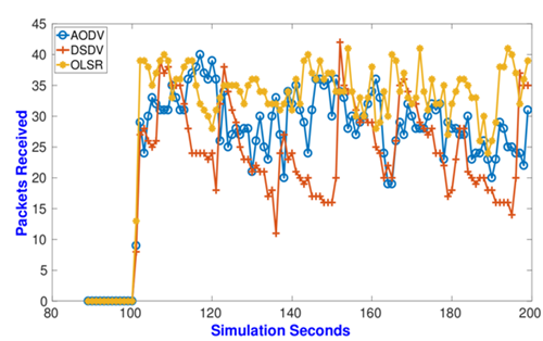 Figure 2. Packets Received for Different Wi-Fi MANET Routing Protocols.