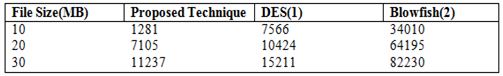 The proposed technique is implemented using different wave files with different sizes. Each time the encryption/decryption time is calculated, and some samples of time calculation are listed in table 3: