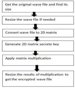 Wave files can be treated as one column matrix (mono sounds: one channel) or two columns matrix (stereo sounds: two channels). The proposed technique is based on this idea and consists of two phases: Phase 1: Encryption and Phase 2: Decryption.