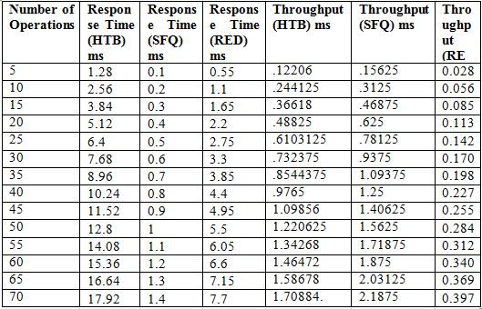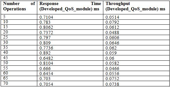 Table 4. Calculation of Response Time and Throughput with Developed QoS module